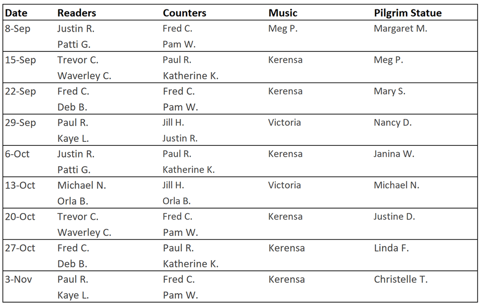 There is a tab for each Mass. Please select the relevant tab for that Mass Roster.